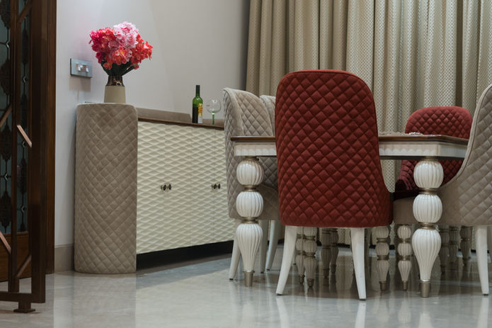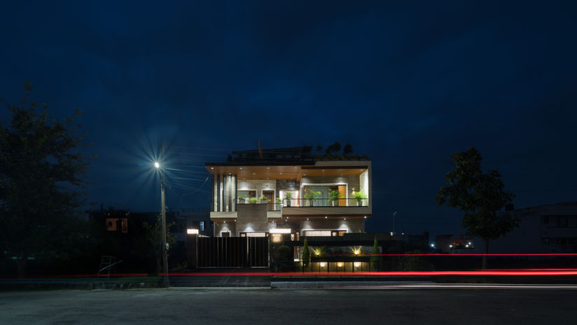As the architect, the vision for this residence is to craft a modern home that seamlessly blends functionality with timeless elegance through thoughtful spatial planning and refined aesthetics. A distinct formal drawing room—ensuring both comfort and spatial clarity. Prioritizing natural light and ventilation, the design integrates large openings and strategic orientation to enhance indoor environmental quality. The overall style fuses modern and contemporary elements, characterized by clean lines and minimalism, while the formal drawing room introduces a subtle neoclassical character through classical proportions and ornamental accents. Materiality plays a vital role in expressing the design narrative: natural teak wood brings warmth and texture, polyster paints in soft neutral shades offer sleek finishes, and touches of gold introduce understated opulence. This residence is envisioned as a sophisticated yet comfortable space—rooted in modernity, enriched with classical grace, and designed to endure with quiet luxury.